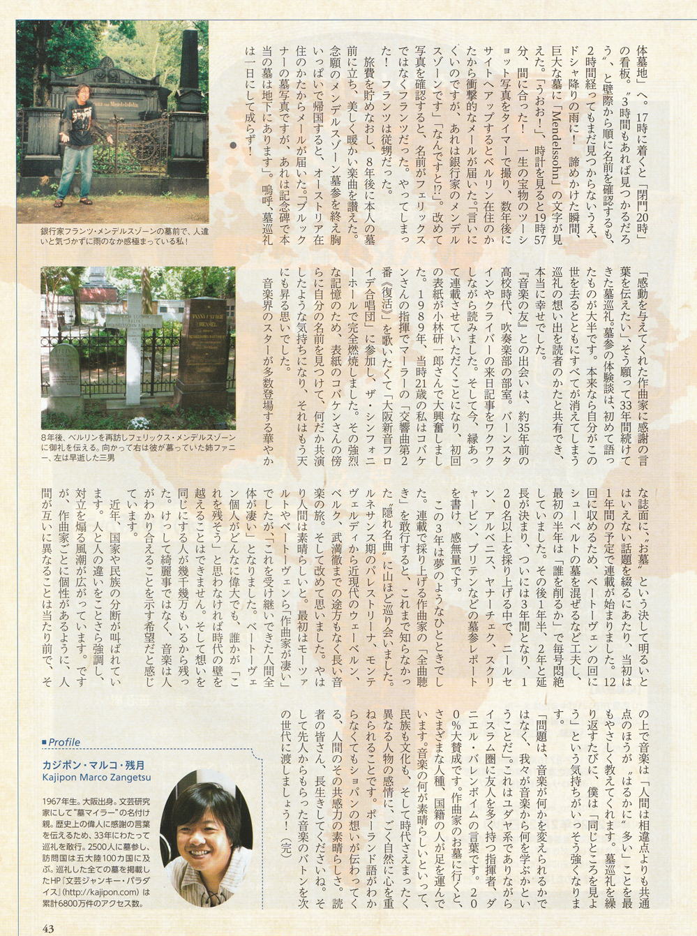 墓巡礼レポートを紹介します。こちらが《音楽の友》連載時の「最終回」に当たります。音楽ファンの方、お楽しみいただければ幸いです♪