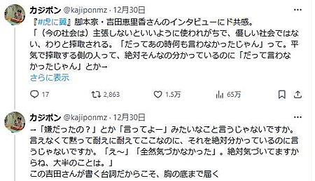 ●12月31日… //昨日(12/30)、日記に書いた『虎に翼』の脚本家・吉田恵里香さんのインタビューをXで紹介したら、たった1日で閲覧65万件、“いいね”1万5千件という驚異的なことに!ツイッター時代から14年間、一度も閲覧10万超えがなかったので、いわゆる“初バズり”ということに。それだけ吉田さんの言葉が多くの人に必要とされ、刺さったということ。生きづらさを感じている人がこんなに多いことが可視化されたわけで、来年は良い方向に社会が変わっていきますように。 ※投稿からずっと通知が続いているんですが、今夜の紅白歌合戦は『虎に翼』コラボがあるので、また跳ね上がるかも…。 ![]() ![]() ●『虎に翼』脚本家・吉田恵里香さんいわく「これまでのドラマでは省(はぶ)かれてきた人たちを書こうと思った」。 12月30日の朝7時20分から朝ドラ『虎に翼』の約3時間の総集編をオンエア!本放送を見逃されたかたは是非。物語の舞台は1931年から戦争を挟んで1974年までの日本社会。 このドラマで何度も映されるのは、壁面に書かれた憲法第十四条「すべて国民は、法の下に平等であって、人種、信条、性別、社会的身分又は門地により、政治的、経済的又は社会的関係において、差別されない」。生きづらさを感じて窒息しそうな心に酸素を。まっこと素晴らしい作品です。 NHK『虎に翼』より吉田恵里香さんはインタビューでこうも語っていた。 「(今の社会は)主張しないといいように使われがちで、優しい社会ではない、割と搾取される。「だって、あの時何も言わなかったじゃん」って。平気で搾取する側の人って、絶対そんなの分かっているのに「だって言わなかったじゃん」とか「嫌だったの?」とか「言ってよー」みたいなこと言うじゃないですか。 だってね、言えなくて黙って耐えに耐えてここなのに、それを絶対分かっているのに言うじゃないですか。「え〜」「全然気づかなかった」。絶対気づいてますからね、大半のことは。だから「それ、どういう意味ですか」って(こちらが)聞くだけでも変わるっていうか。 私も嫌われたいわけじゃないから、(ペンを取るときに)ちゅうちょすることはあるけど。でも、「言わない自分」と「言う自分」どっちがいいかって悩んで黙って見ないふりした自分よりは、怒られても言う自分の方がいいかなと思ってやっています」 ●元SMAP中居正広氏のスキャンダル、本当に9000万円支払うほどのことがあったのなら、かなり深刻な問題。被害者はPTSDで仕事を続けられなくなったという。文春にはフジテレビ幹部の超大物が手引きしたとあり、それなら今回はテレビ局自体が絡んでいるので、単に出演しないとかで済まない。ジャニーズ事件のときに女性タレントやアイドルが“接待”の名で強要される性被害にも救済が入るかと思ったら、あまりにも闇が深いためかスルーされた。フジは社員を枕営業に使うという、えぐいことをやた。今度こそ、テレビ局・芸能界はこの問題と向き合わねばならない。 ●クリストファー・ノーラン監督の次回作は、古代ギリシャの詩人ホメロスの『オデュッセイア』とのこと!神の呪いを受けたトロイア戦争の英雄オデュッセウスが、故郷に帰還するまでの波瀾万丈の10年間を描く。最新の映像技術で紡がれる神話アクション、見応えがありそう。2026年夏公開。 /『アベンジャーズ:シークレット・ウォーズ』は2027年5月公開と随分先だけど、X-MENのメンバーが複数登場するらしいので、そちらも大いに期待している。 ※もう俳優の不祥事で撮影延期になりませんように。サノスに匹敵する敵役になるはずだったカーン(ジョナサン・メジャース)の退場を受け、どう風呂敷をたたむんだろ。 ●先日のNHKスペシャルで、K-POPに続いていよいよJ-POPが海外でブームになってきたと報道、日本人2人組Creepy Nutsの「Bling-Bang-Bang-Born」のPVが再生数3億回、米ビルボードのトップテンに入ったとのこと。アメリカの音楽祭コーチェラ・フェスティバルで同曲をライブ、海外の聴衆が踊りまくっている様子に驚き、中3の息子に「Creepy Nutsって知ってる?ブームらしいで」と教えたら。「はッ!?知らんかったん!?今年めっちゃ流行ってたやん!」と呆れ顔。そして子は「お父さんは『ダンダダン』のOP曲が好きって言ってたやん。あれもCreepy Nutsやで?」と逆に教えてくれた。いやはや、これだけ毎日おすすめ番組情報をアップしてるのに、年末まで「Bling-Bang-Bang-Born」をまったく知らなかったですわ(汗)。 ※分析によると、この曲が流行った理由は、サビの「ブリン・バン・バン・ボン」が言語の違いを超えて「口気持ちいいから」と。そして、一番最初に「踊ってみた」をやり出したのがウクライナ軍というのも驚きだった。そこから東欧→西欧→米国にブームが広まっていった。 ●今年はベートーヴェンの『第九』初演(1824年)からちょうど200年。Eテレ『偉人の年収』によると、初演の売上げは約370万円(現在価値)あったが、合唱団の出演料や劇場使用料、ポスター制作費